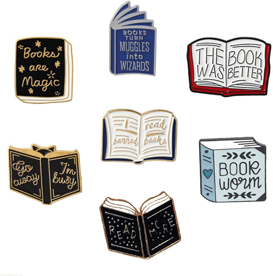 These fun book pins look great attached to work bags, purses, backpacks, or even clothing. The options are endless, as these pins will elevate any surface they’re attached to.